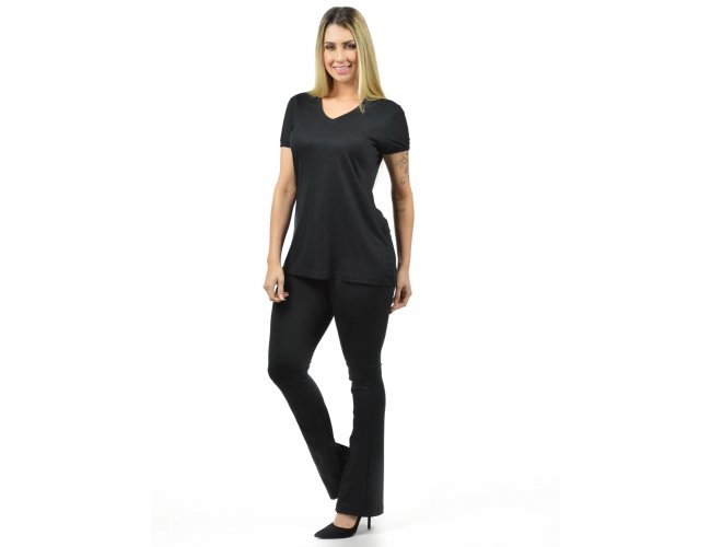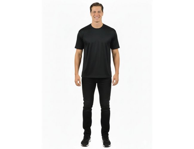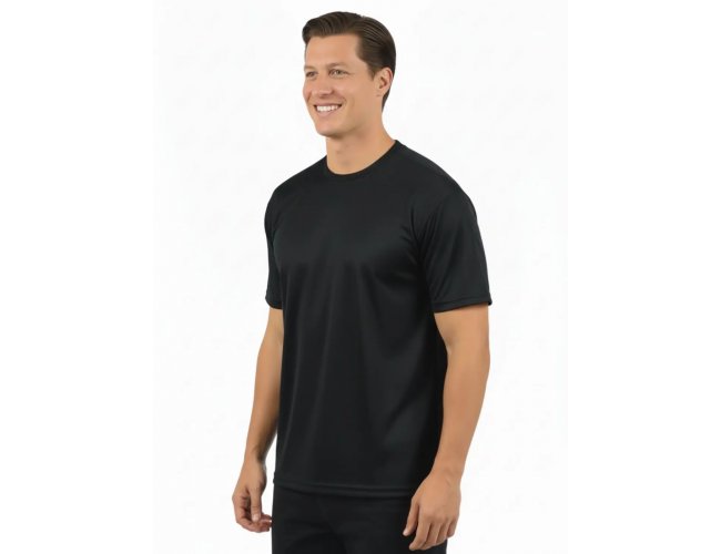 Fabricada em tecido leve e durável, com composição de 67% poliéster e 33% viscose, essa camiseta oferece conforto térmico e excelente caimento tanto em modelos masculinos quanto femininos.