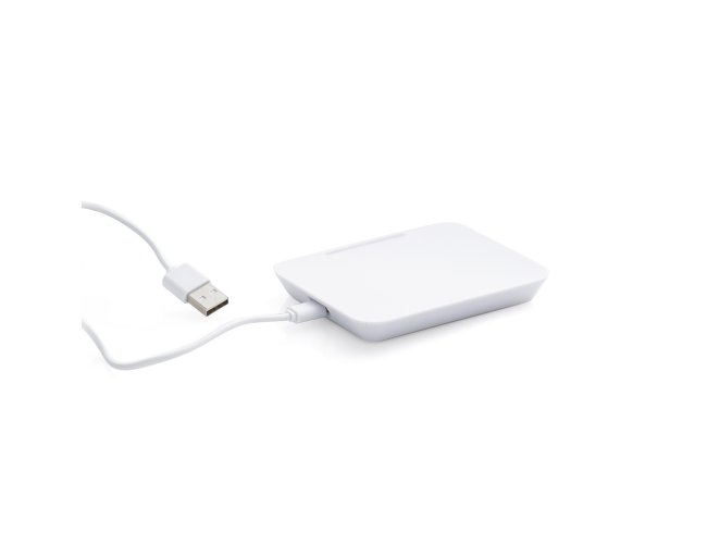 Carregador por indução com suporte para celular, base com borrachas antiderrapantes na área inferior. Acompanha cabo USB. Obs.: O dispositivo não armazena carga (não possui bateria interna), apenas transfere carga quando conectado à uma fonte de energia.