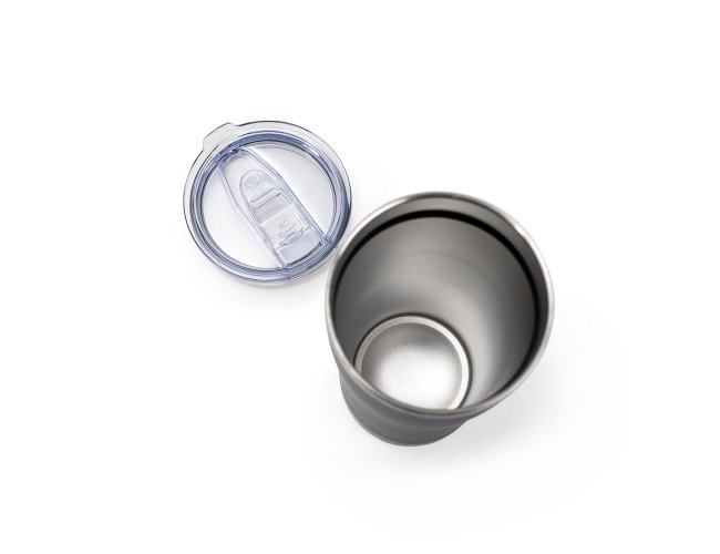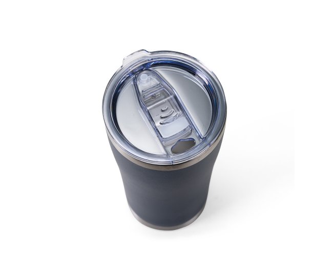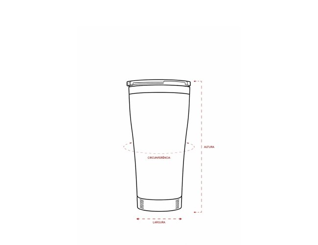 Copo térmico em aço inox 304, com capacidade máxima de 550 ml. Apresenta construção em parede dupla e tampa plástica de pressão, com sistema não rosqueável, proporcionando fechamento eficiente, dificultando vazamentos. Conta também com anel de vedação e protetor deslizante para o bocal, que contribuem para a qualidade da bebida.