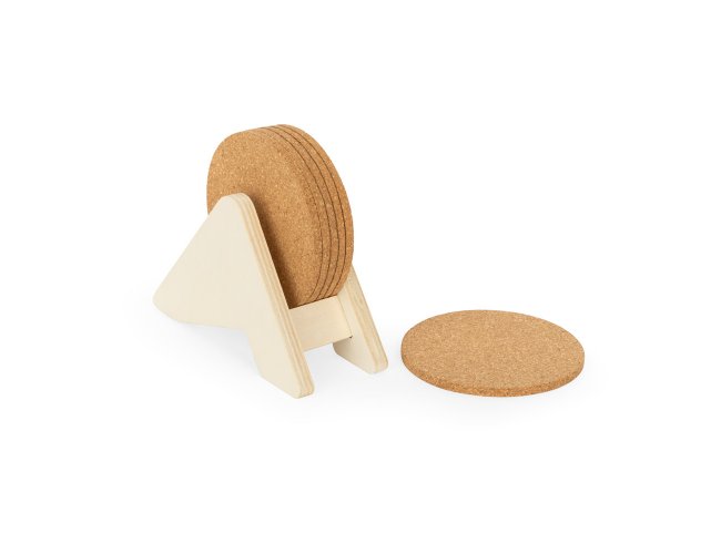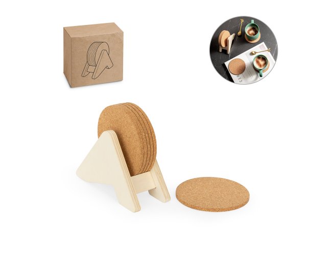 Porta copos em madeira com 6 bases para copos em cortiça Personalizado